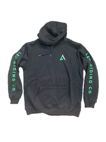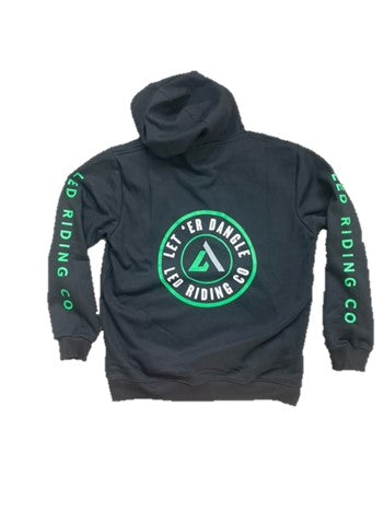 Black hoody with Green crest and Green LED writing down the sleeves and the let er dangle crest on the back perfect for guys and girls!