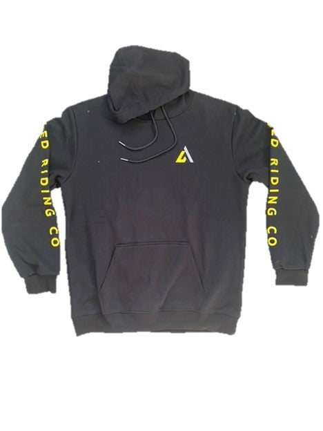 Black hoody with yellow crest and yellow LED writing down the sleeves with the let er dangle crest on the back perfect for guys and girls!